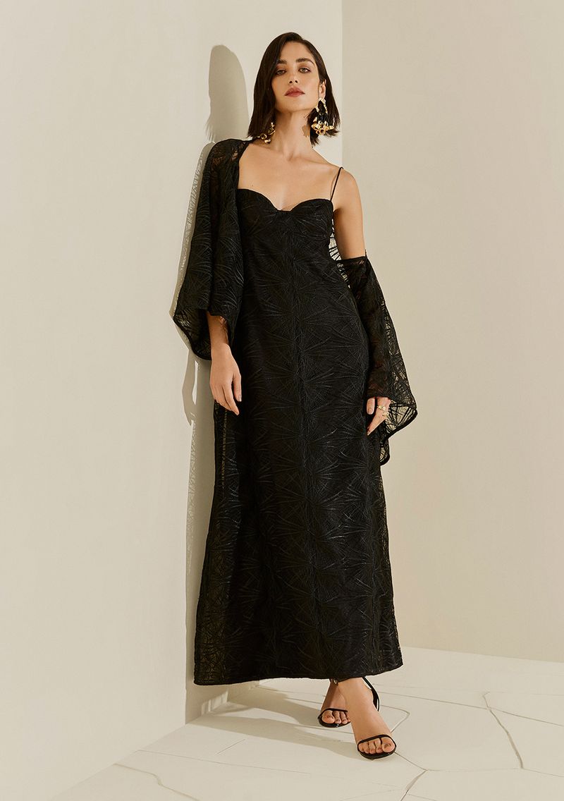 LinhasColeçõesRoupasVestidosVestidosVestido Morena Rosa Ajustado Decote Reto Com Alça Longo Preto
