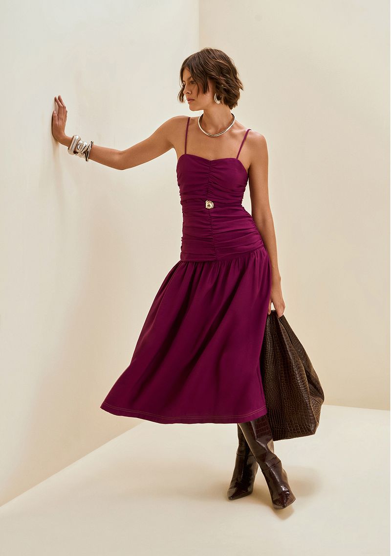 OUTLETLinhasColeçõesRoupasVestidosVestidosVestido Morena Rosa Ajustado Decote Reto Com Alça Midi Roxo