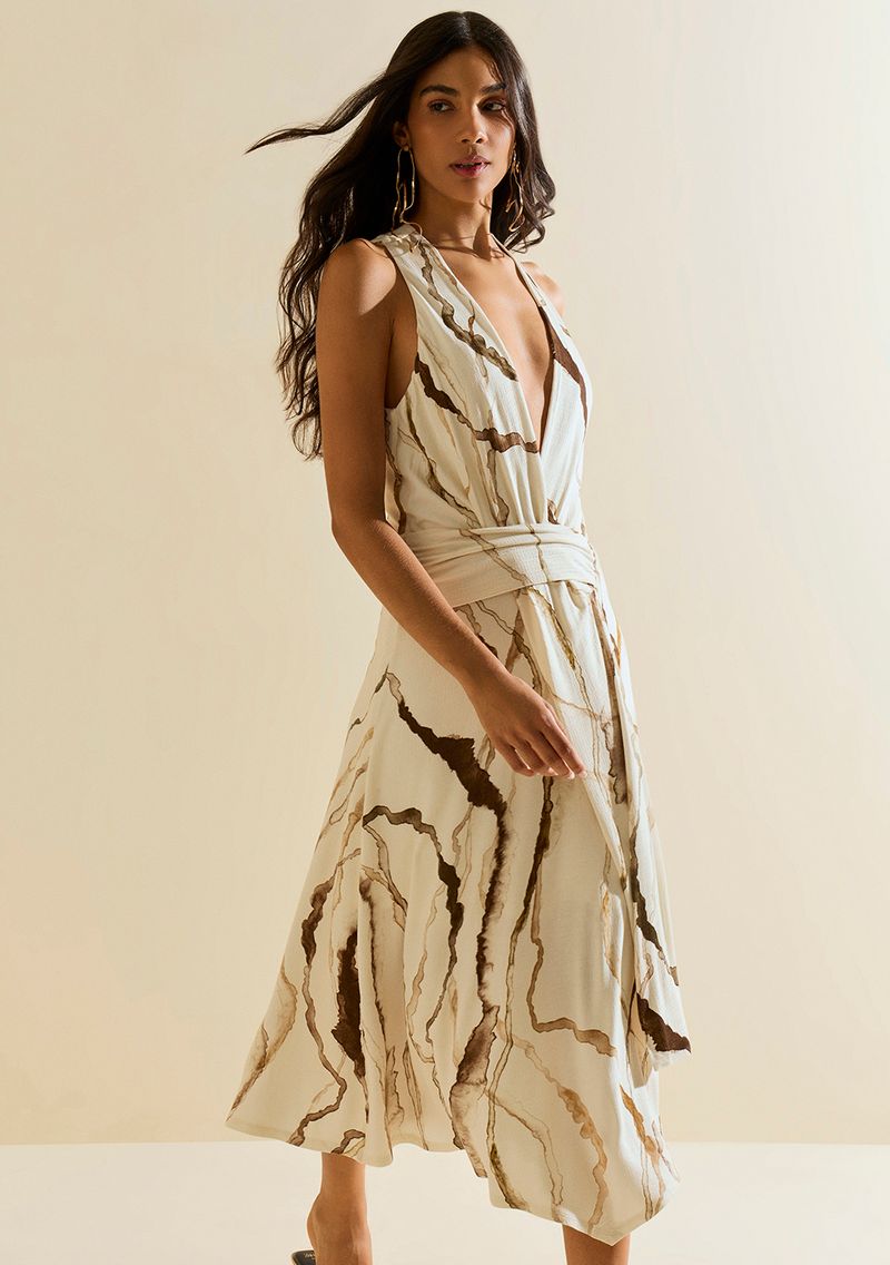 Vestido Morena Rosa Ajustado Decote Transpassado Sem Manga Midi Off White: Uma peça que exala sofisticação e elegância, perfeita para a mulher que deseja se destacar em qualquer ocasião. Com seu design ajustado e decote transpassado, este vestido midi sem mangas valoriza cada curva, proporcionando um visual poderoso e feminino. Confeccionado em tecido de alta qualidade, composto por 98% viscose e 2% elastano, oferece conforto e leveza para os dias quentes de verão. Ideal para eventos casuais, festas ou para o dia a dia, combine com sandálias de tiras e acessórios discretos para um look elegante. A coleção Recife traz a essência vibrante do verão brasileiro, inspirando-se nas cores e texturas tropicais. *Os acessórios não acompanham a peça*.