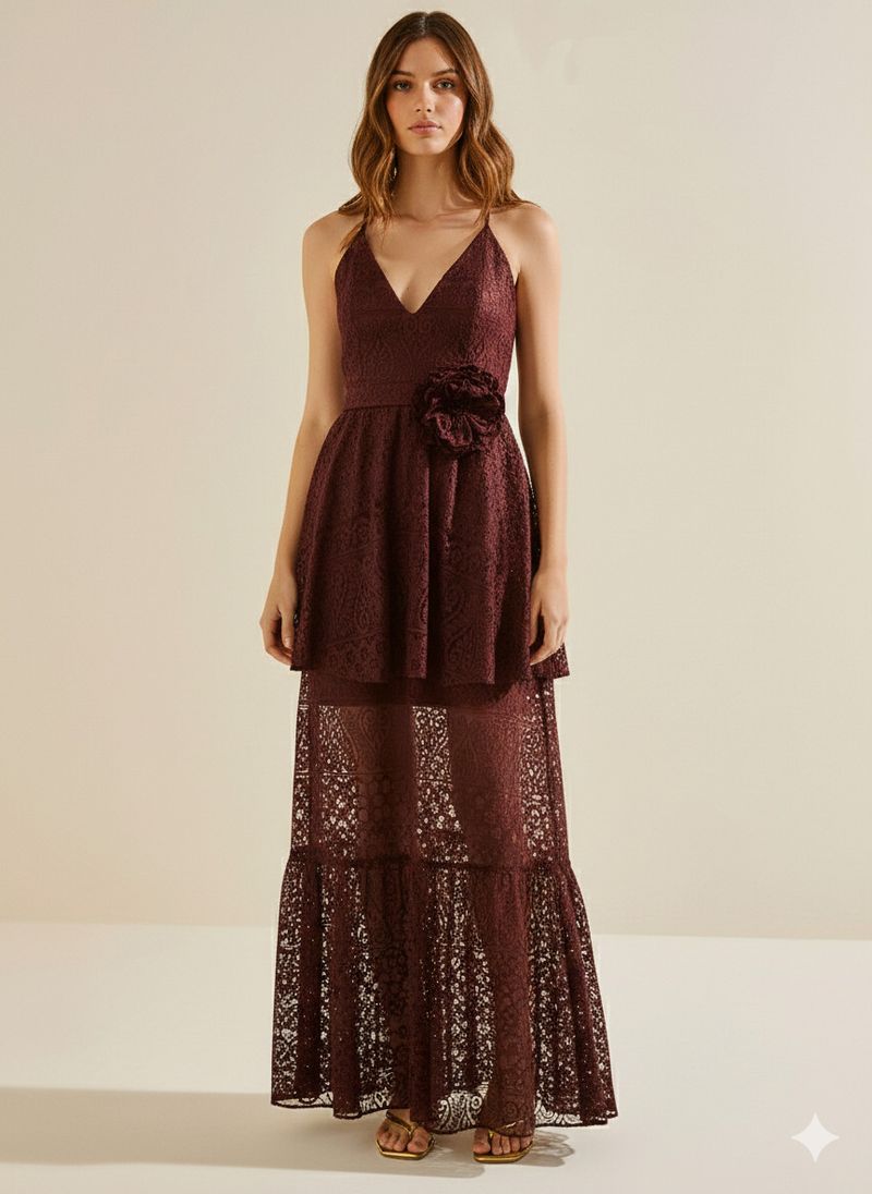 OUTLETLinhasColeçõesRoupasVestidosVestidosVestido Morena Rosa Ajustado Decote V Com Alça Longo Bordo