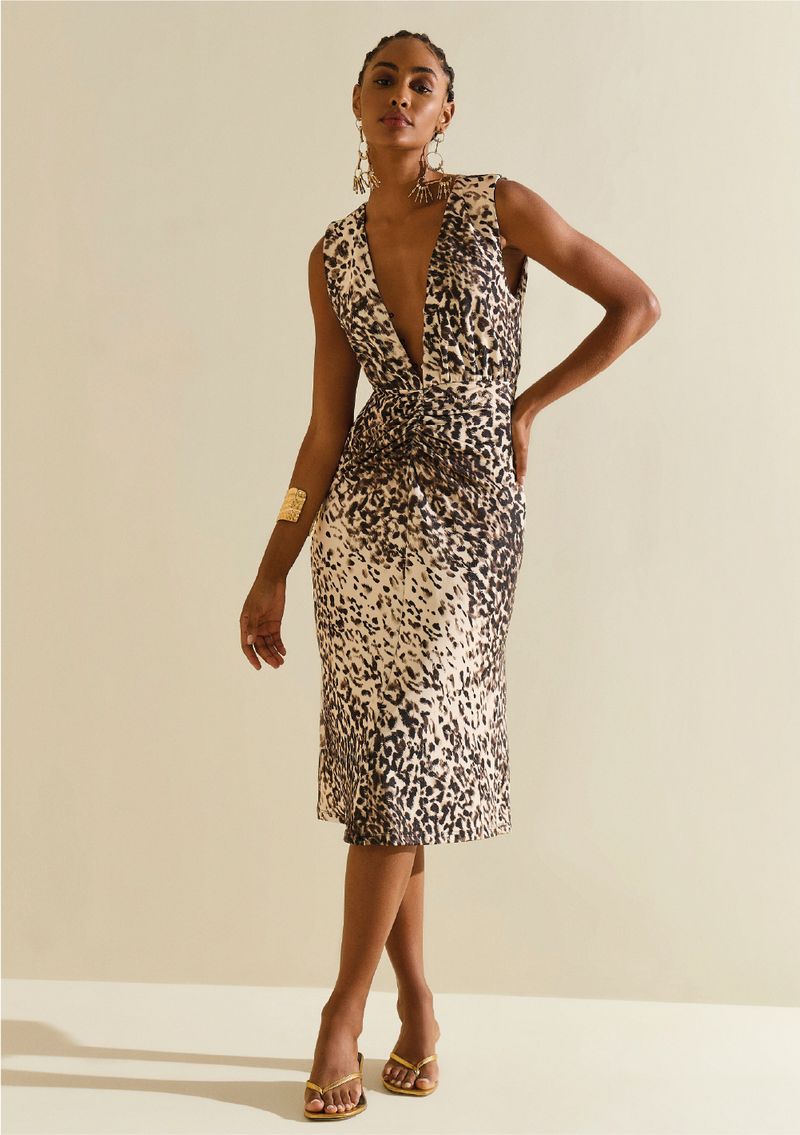 O Vestido Morena Rosa Ajustado Decote V Sem Manga Longo Bege é a personificação da elegância e do charme da mulher contemporânea. Com recortes inesperados e uma textura sofisticada, ele se ajusta à silhueta, destacando a beleza da mulher Morena Rosa. Ideal para ocasiões que vão do casual ao elegante, esse vestido é um convite para brilhar com confiança. O decote em V e o comprimento longo adicionam um toque de sofisticação, tornando-o perfeito para um jantar à luz de velas ou uma reunião importante. Combine-o com sandálias de salto alto e uma clutch vibrante para um look inesquecível. Parte da coleção Verão 2026, o vestido reflete a essência brasileira com um design que pulsa com energia e paixão. Os acessórios não acompanham a peça.