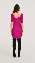 Vestido Morena Rosa Curto Decote Canoa Decote Costas Rosa