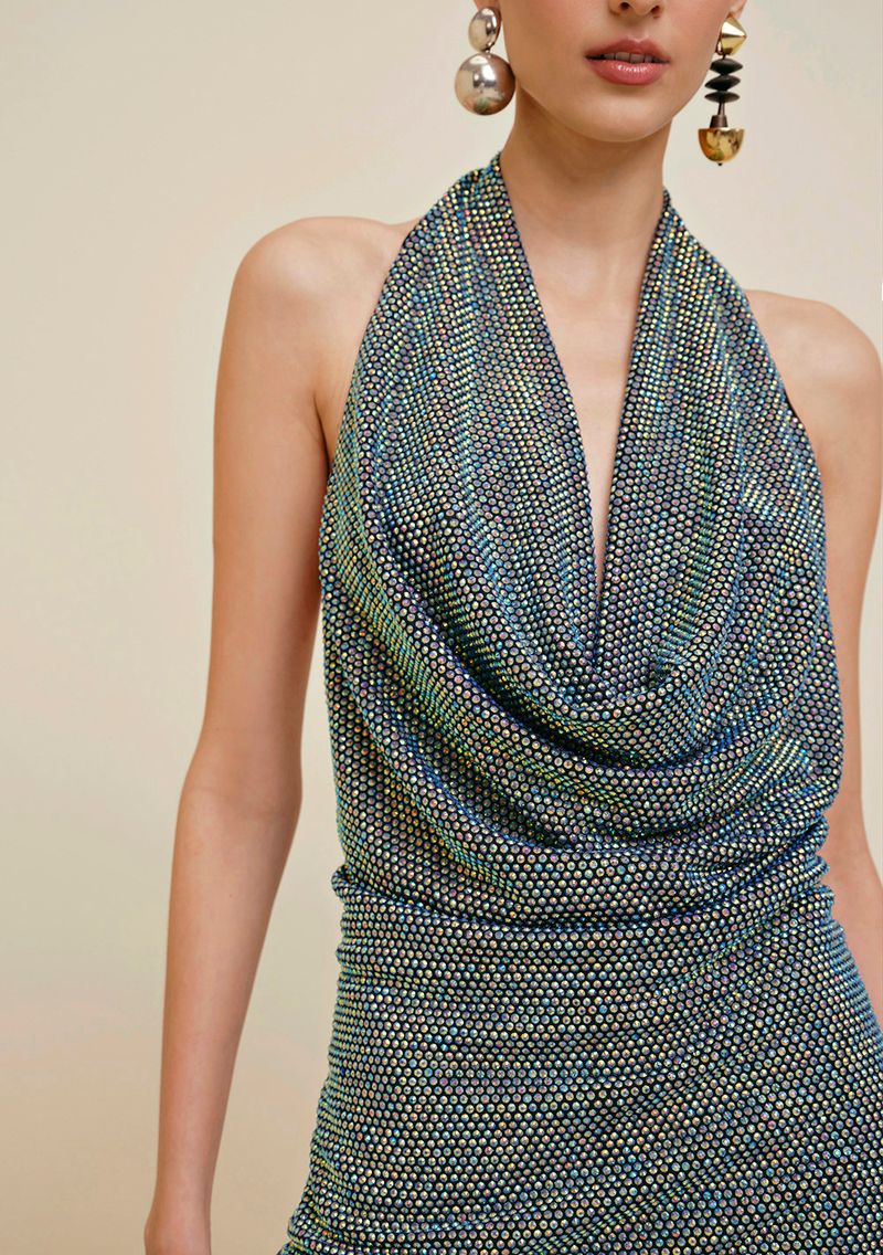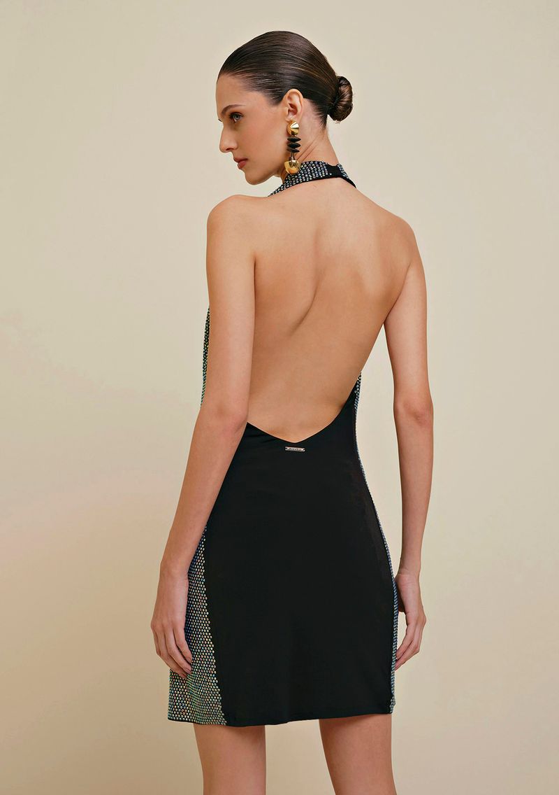 OUTLETLinhasColeçõesRoupasVestidosVestidosVestido Morena Rosa Curto Decote Degage Detalhe Termocolante Preto