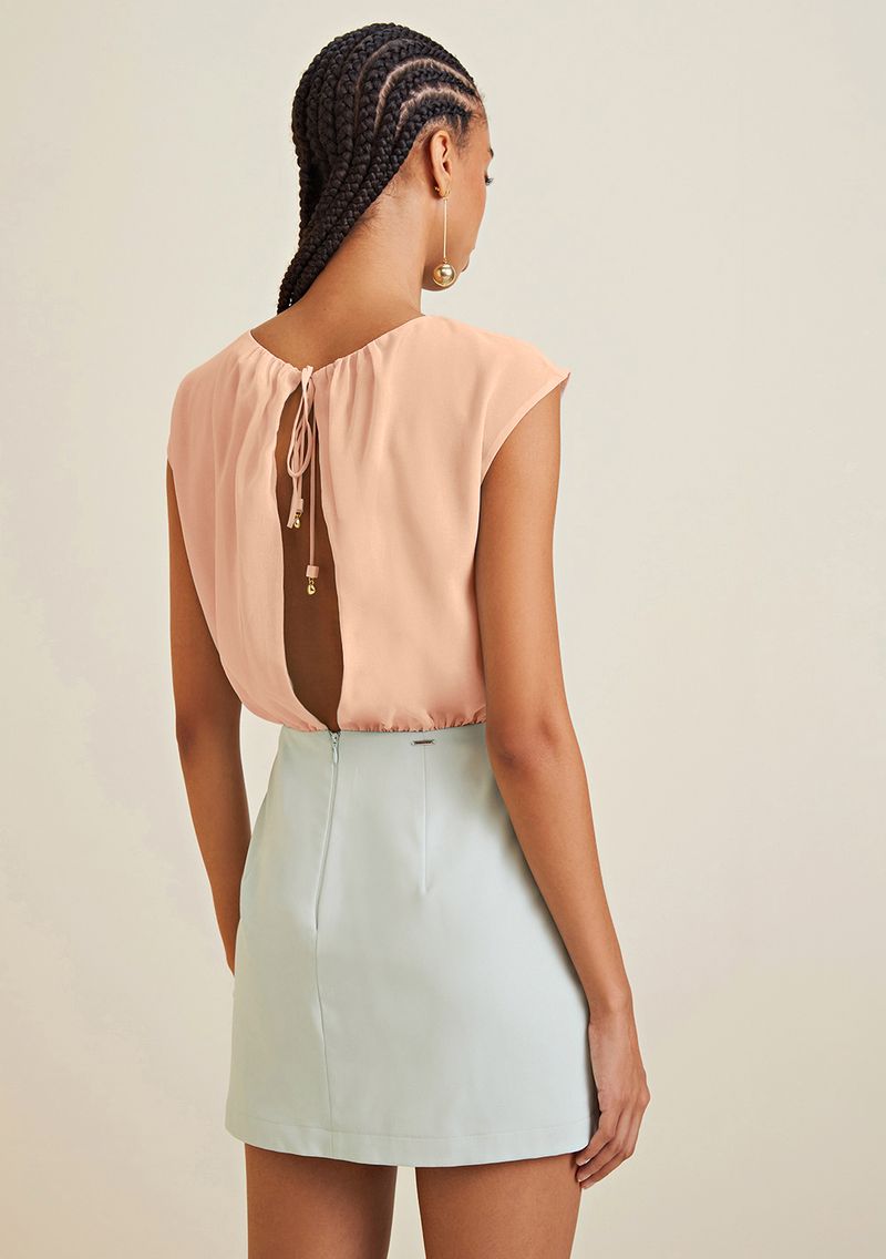 Vestido Morena Rosa Curto Decote Redondo Abertura Costas Rosa