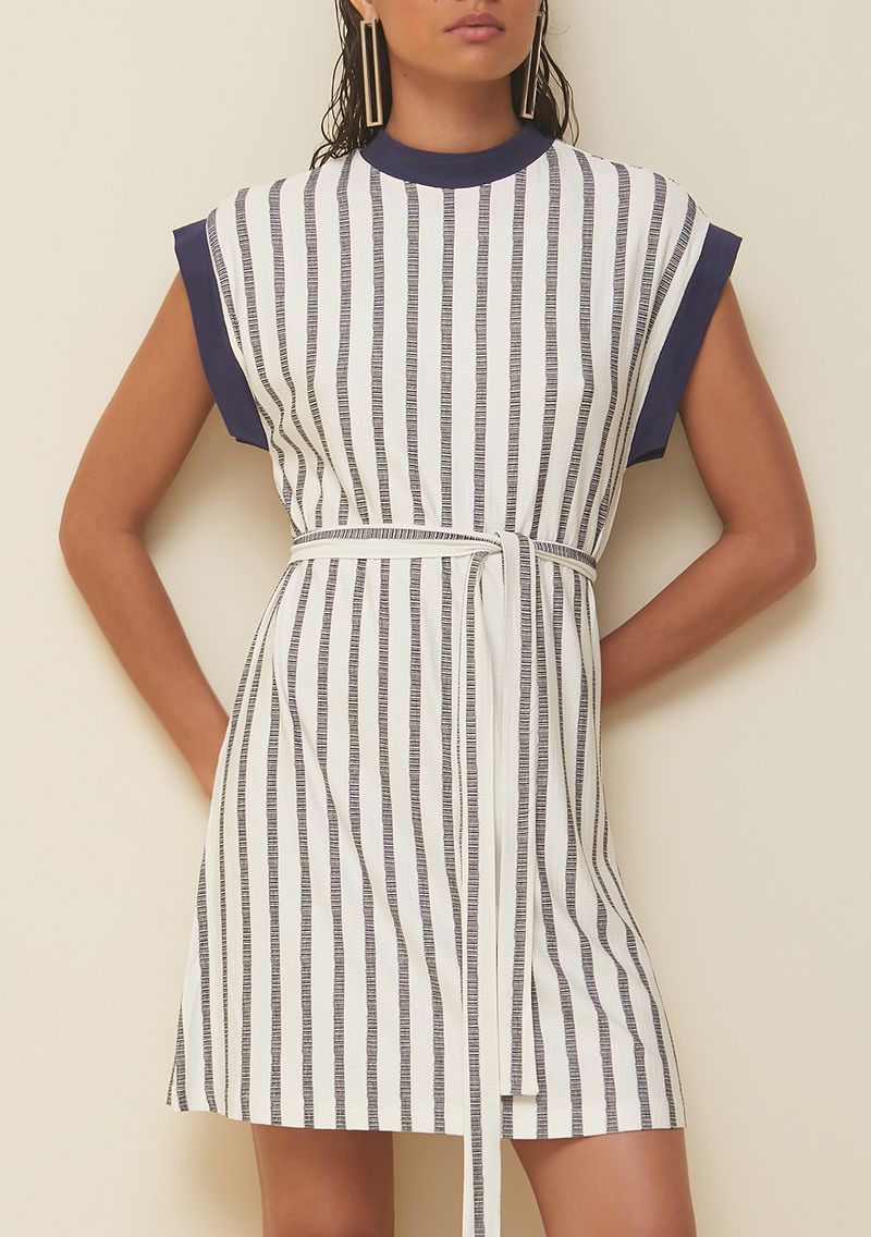 OUTLETLinhasColeçõesJeansRoupasJeansVestidosVestidosVestidosVestido Morena Rosa Curto Decote Redondo Com Faixa Off White
