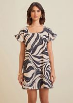 Vestido Morena Rosa Curto Decote Redondo Detalhe Manga Preto