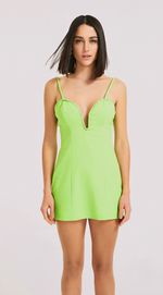 Vestido Morena Rosa Curto Decote U Detalhe Zíper Verde Claro