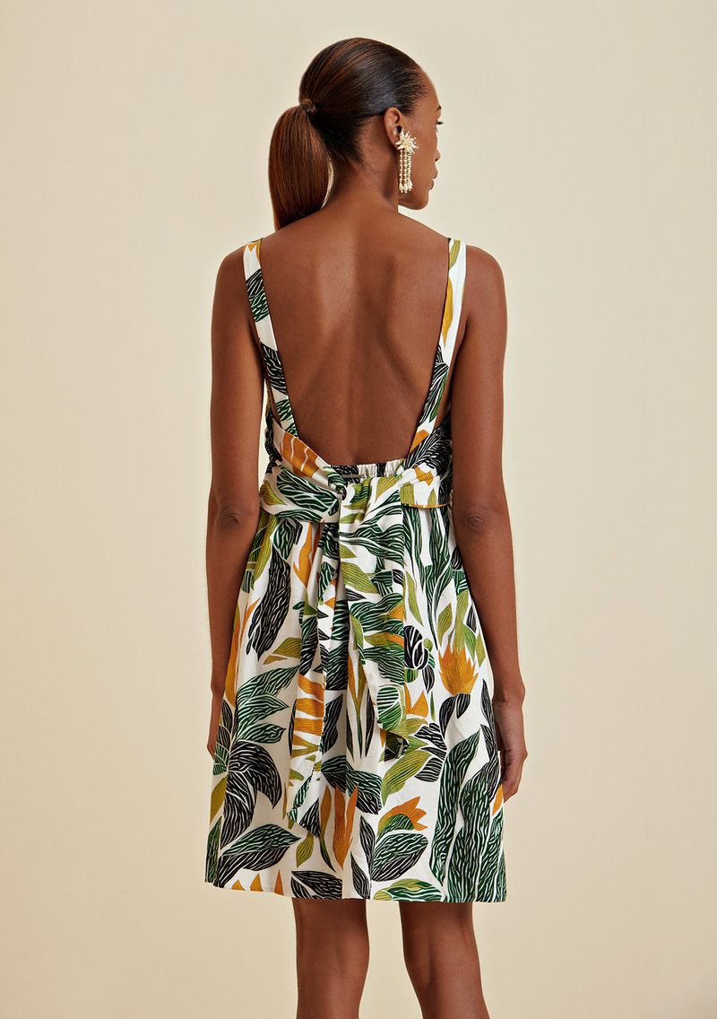 Vestido Morena Rosa Curto Decote V Amarração Costas Cru