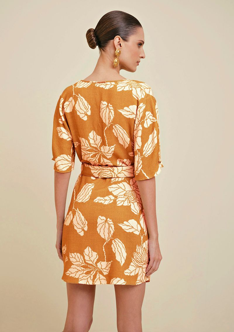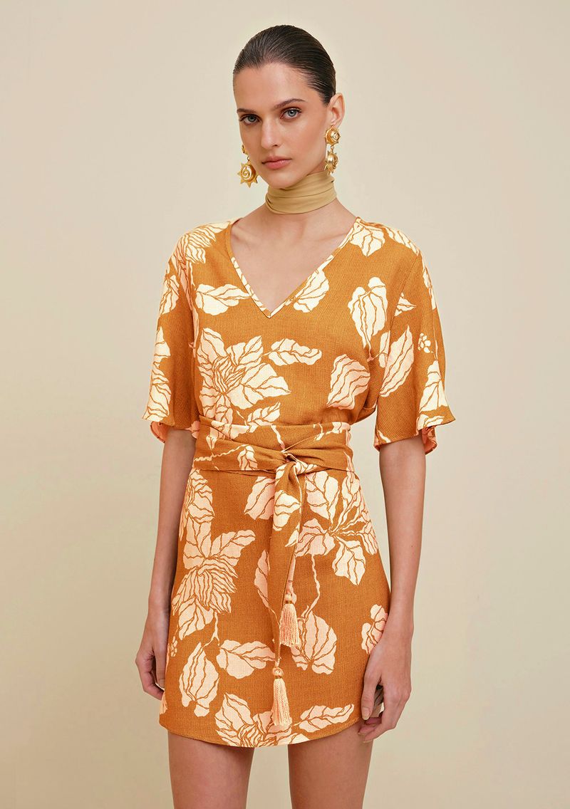 OUTLETLinhasColeçõesRoupasVestidosVestidosVestido Morena Rosa Curto Decote V Com Faixa Laranja