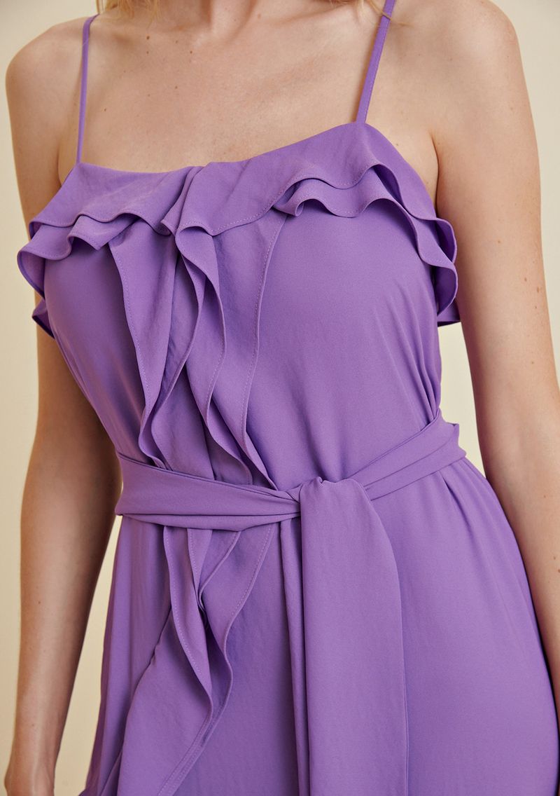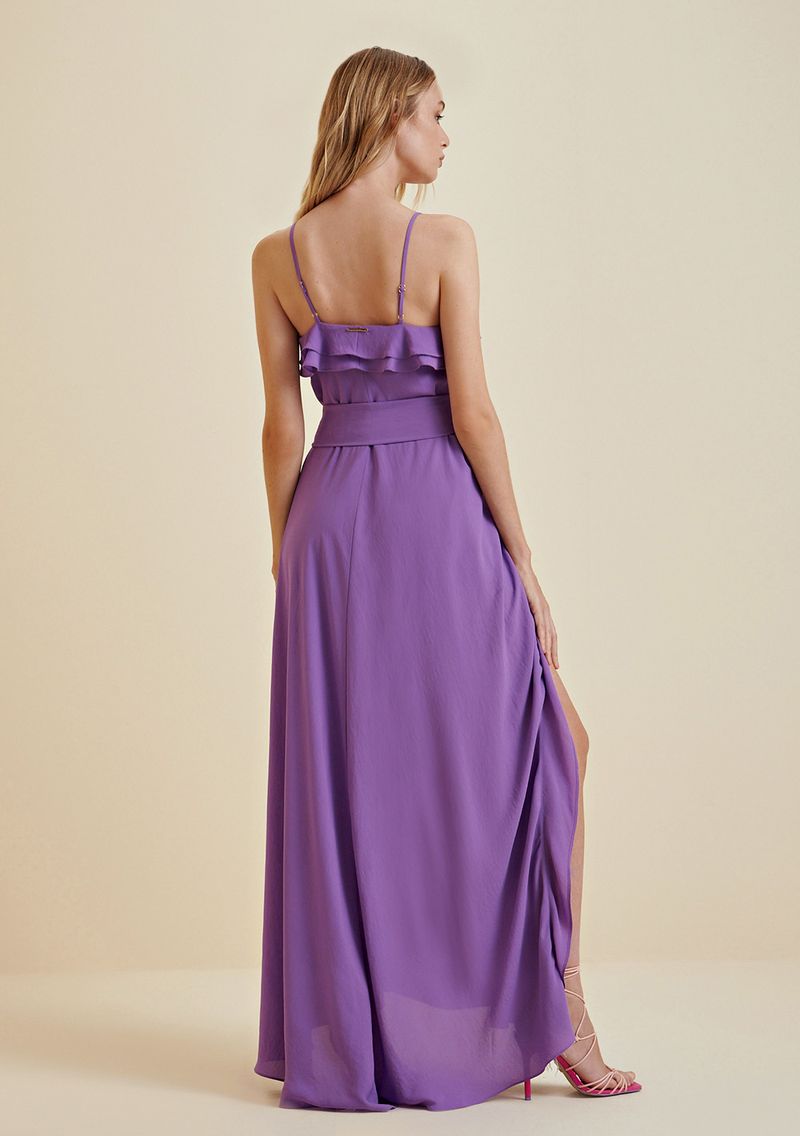 Vestido Morena Rosa Longo Decote Reto Com Babado Rosa