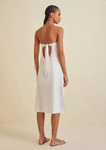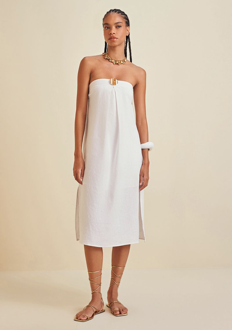 OUTLETLinhasPraiaSaídasVestidosVestido Morena Rosa Midi Decote Reto Detalhe Aviamentos Branco
