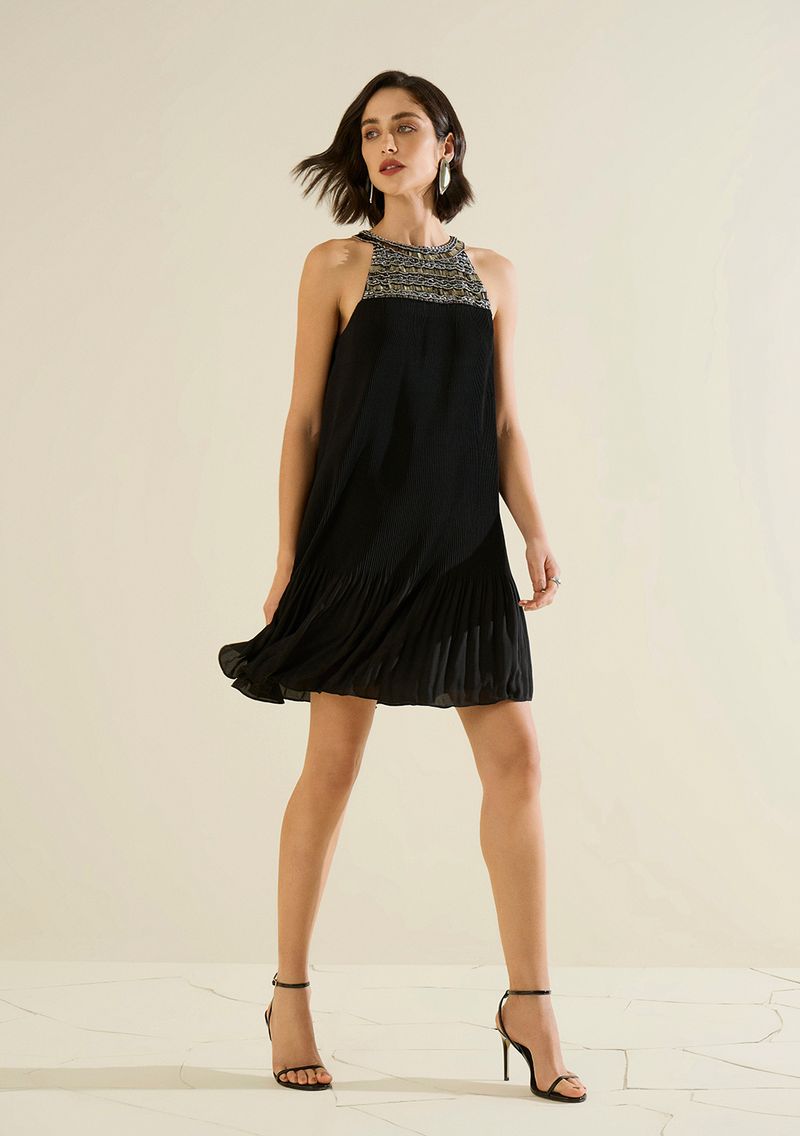 Vestido Morena Rosa Solto Decote Careca Sem Manga Curto Preto