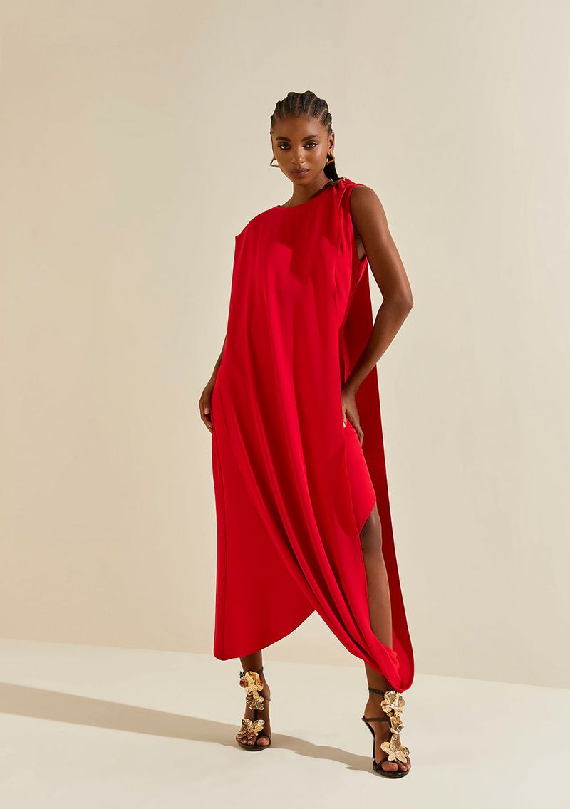 O Vestido Morena Rosa Solto Decote Careca Sem Manga Midi Vermelho é a peça perfeita para a mulher contemporânea que deseja exibir sua feminilidade com elegância e conforto. Com um design que valoriza as curvas, este vestido apresenta um caimento solto em crepe, ideal para as temperaturas quentes do verão. Seu tom vibrante e o decote careca conferem um toque de sofisticação, tornando-o versátil para ocasiões que vão do dia a dia a eventos especiais. Combine-o com sandálias de tiras e um cinto para um visual chic, ou opte por acessórios statement para arrasar à noite. Com a qualidade e o estilo inconfundíveis da coleção À flor da pele, este vestido reflete a essência da mulher brasileira: vibrante, autêntica e confiante. Os acessórios não acompanham a peça.