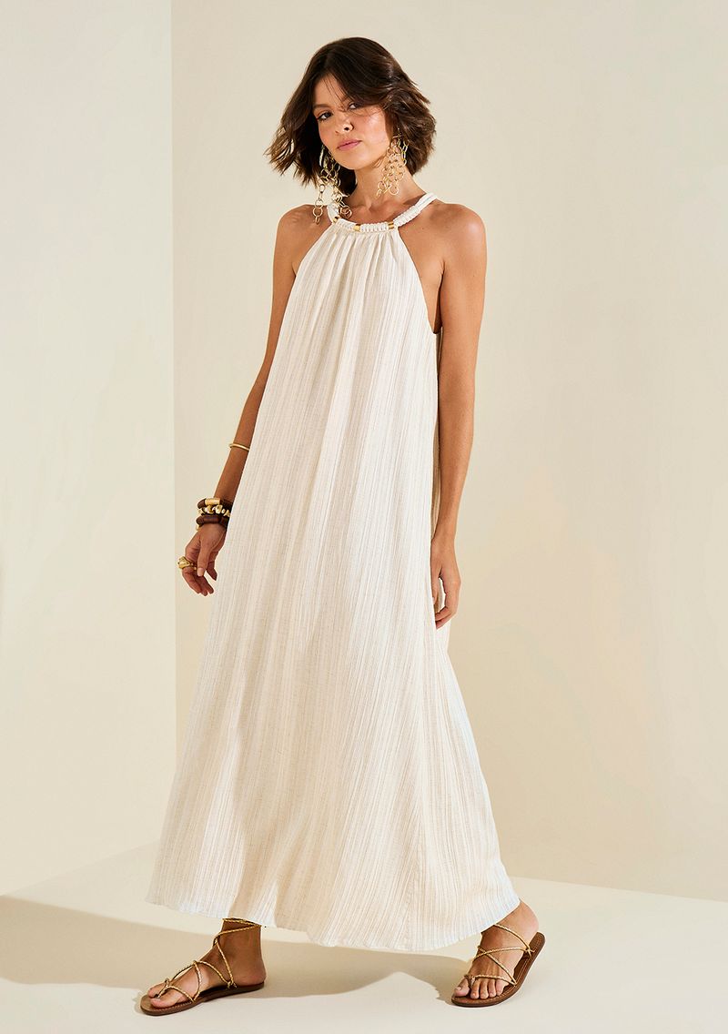 Vestido Morena Rosa Solto Decote V Com Alça Midi Bege: sinta a essência carioca com esta peça que combina charme e elegância em um design fluido e sofisticado. Confeccionado com materiais de alta qualidade, o vestido abraça a silhueta feminina, valorizando cada movimento com suavidade e conforto. O tom bege versátil é perfeito para diversas ocasiões, do casual ao elegante, e o decote V aliado às alças proporcionam um toque sensual e moderno. Ideal para noites de verão ou almoços descontraídos, combine com acessórios dourados e uma sandália nude para um look arrebatador. A coleção 'Ela é Carioca' celebra a brasilidade e a alegria de viver, refletindo em cada detalhe a identidade da mulher Morena Rosa. *Os acessórios não acompanham a peça*