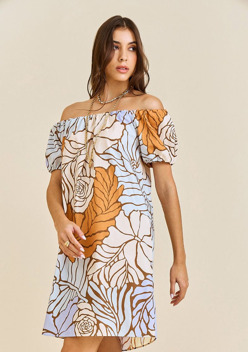 Vestido Morena Rosa Solto Ombro A Ombro Manga Curta Curto Lilas